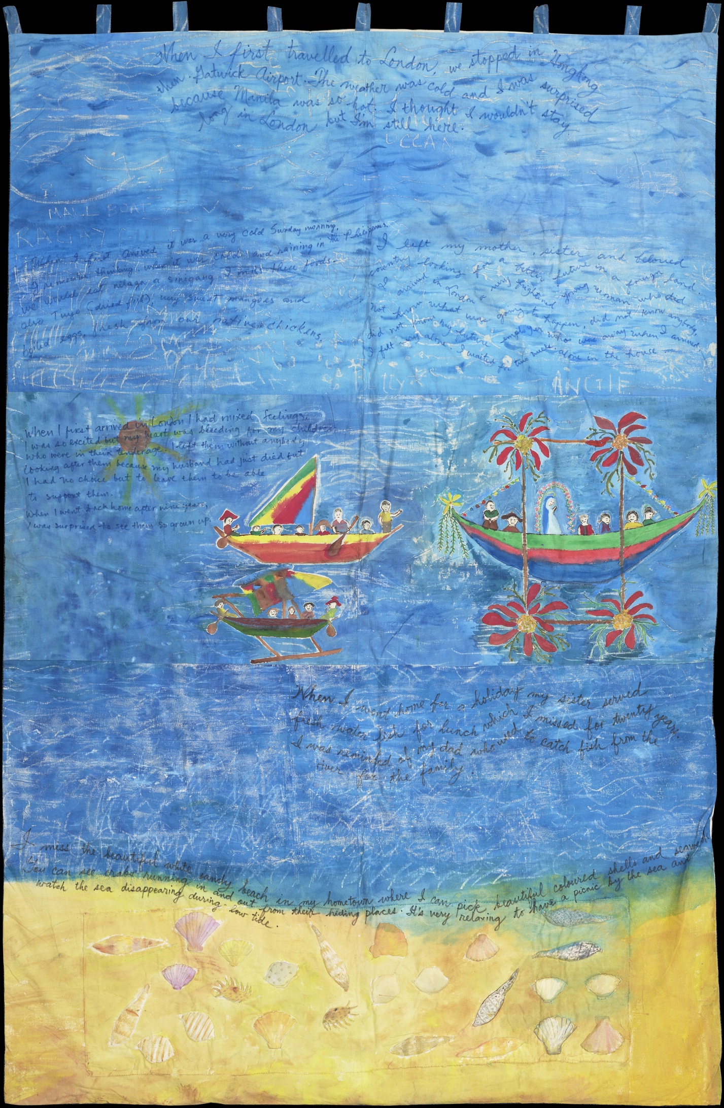 A panel depicting 2 boats and a poem